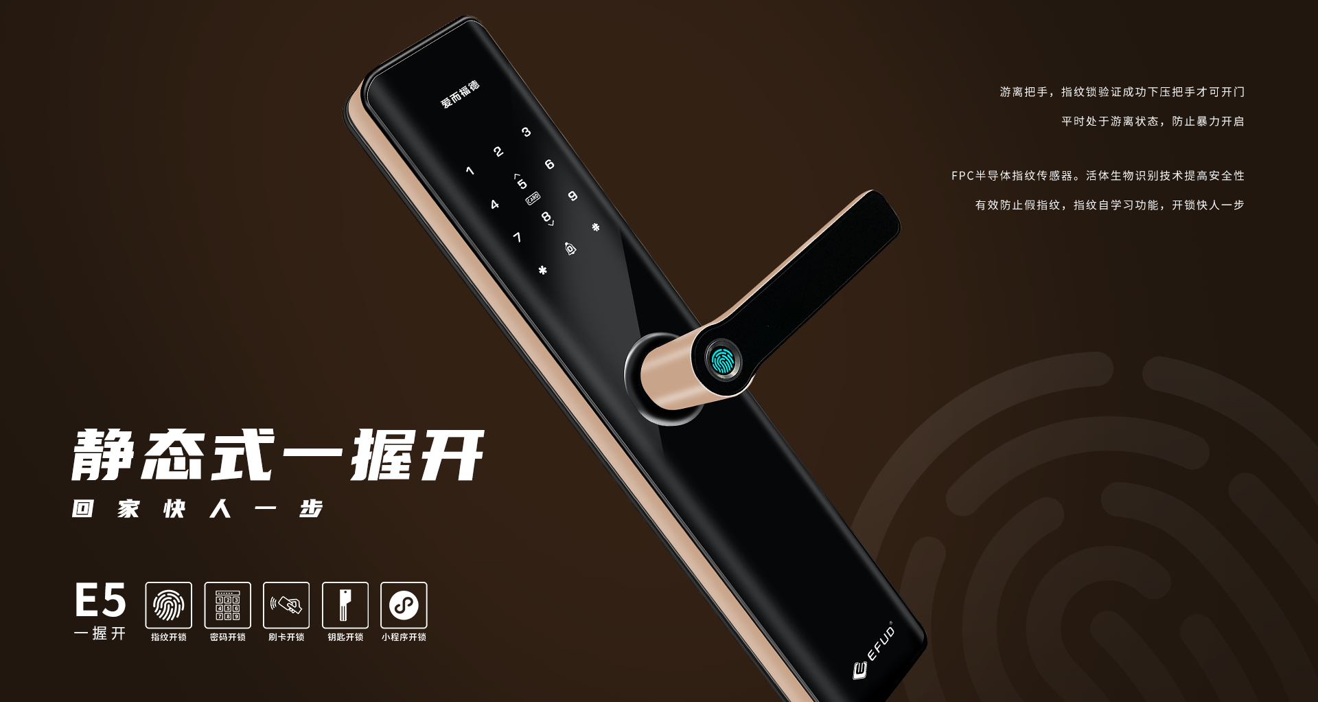 “愛而福德”是一個“為愛而生”的品牌,創(chuàng)始人陳董始終不忘初心,帶著“愛與責任”前行,心無旁騖,只做一件事——專心為家人做一把真正安全與便捷的智能鎖,做一行愛一行,無論面對代理商、經(jīng)銷商、還是企業(yè)員工都要有愛心。愛而福德, 傳播孝道,播種大愛, 讓科技貼近生活,用智慧為您看家!